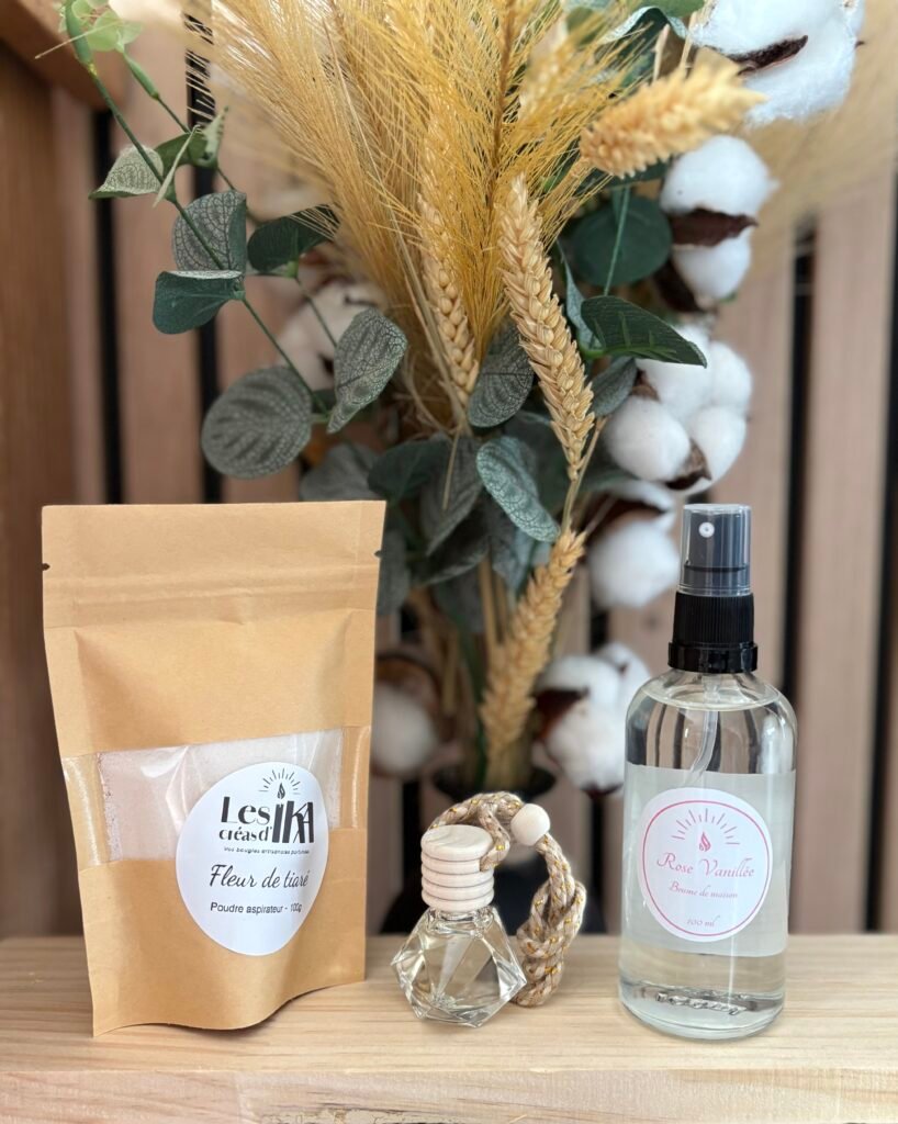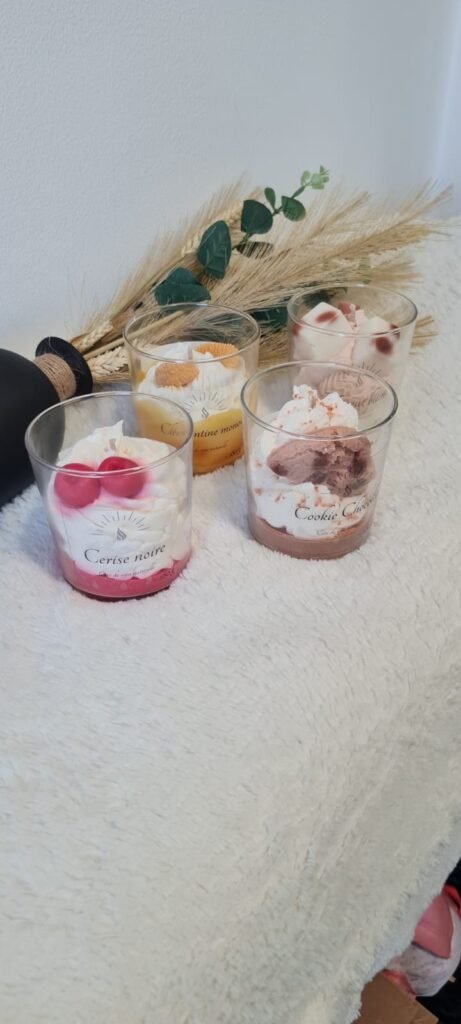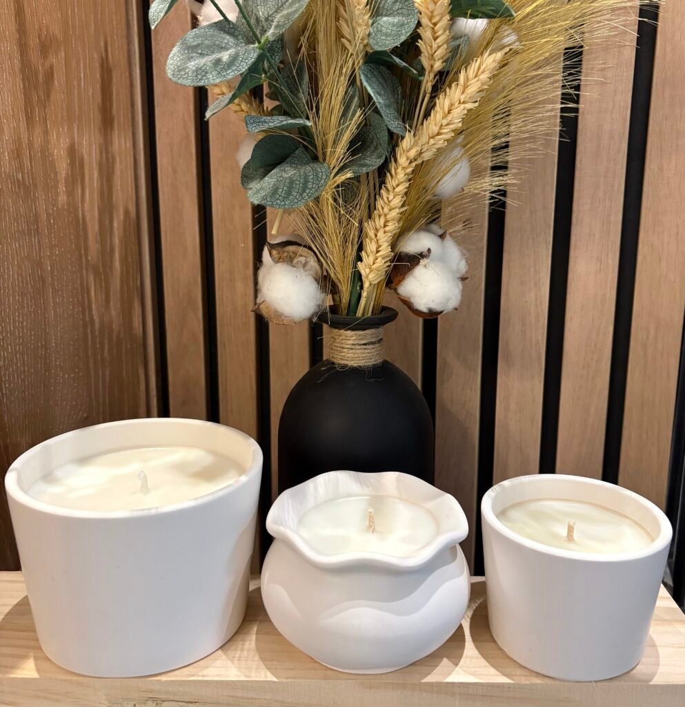 - Des bougies artisanales faites main avec soin.