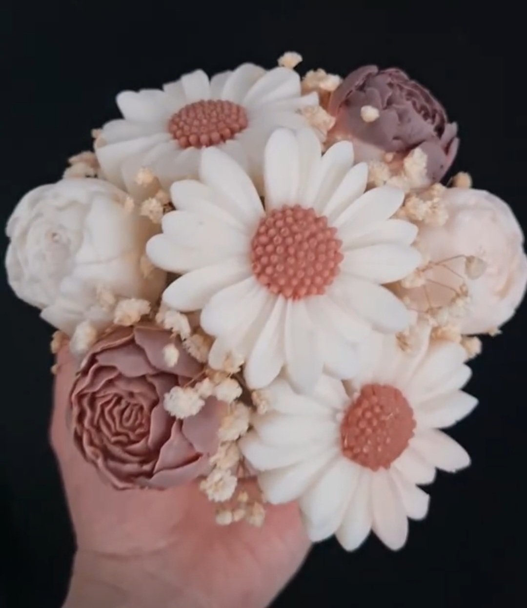 🌸 Bouquet de fondants parfumés aux fleurs d’été : marguerites & pivoines. Fait main, délicatement parfumé, à fondre ou à offrir.