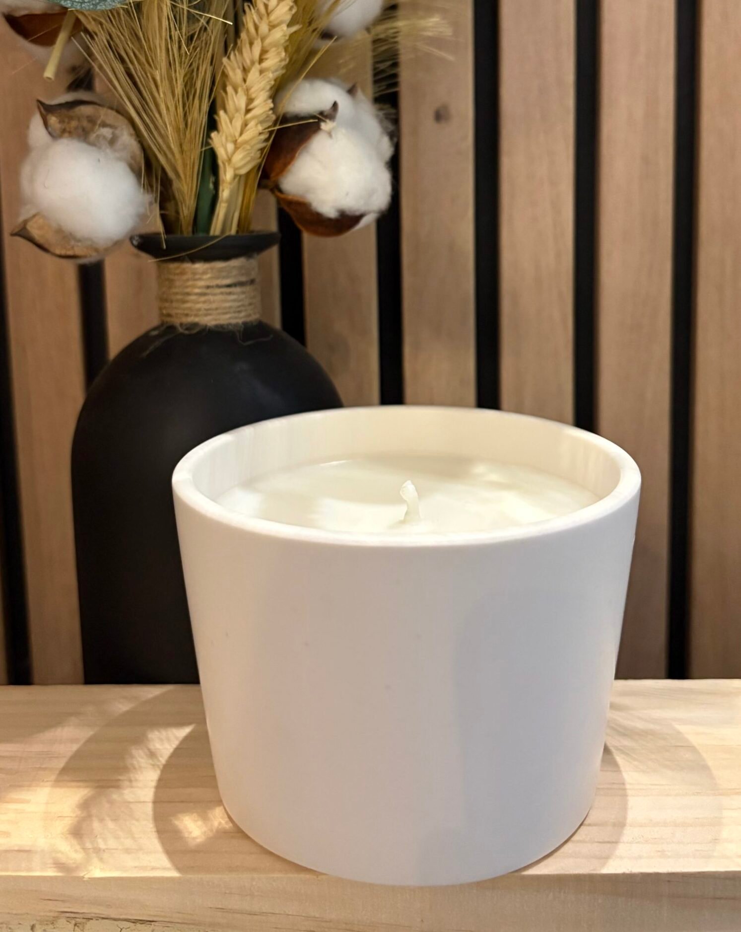 - Cire naturelle : Composée à 100% de cire naturelle, pour une combustion propre et durable.