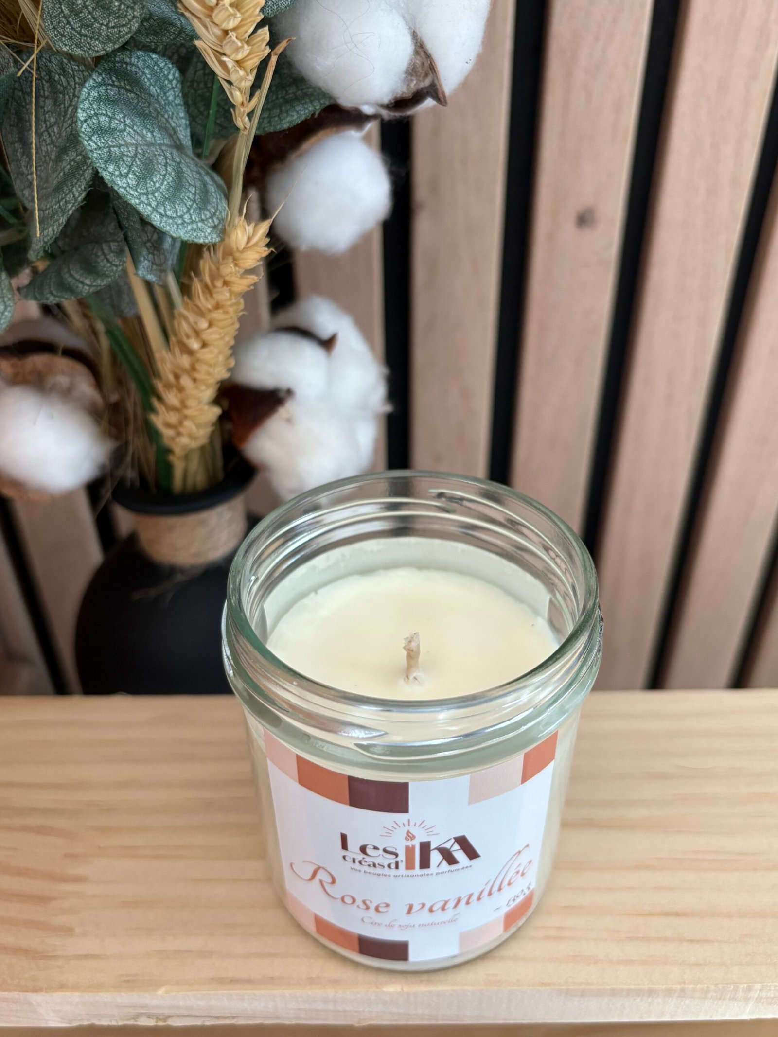 🕯️ Bougie artisanale 130g en cire de soja naturelle, dans son pot en verre avec couvercle.